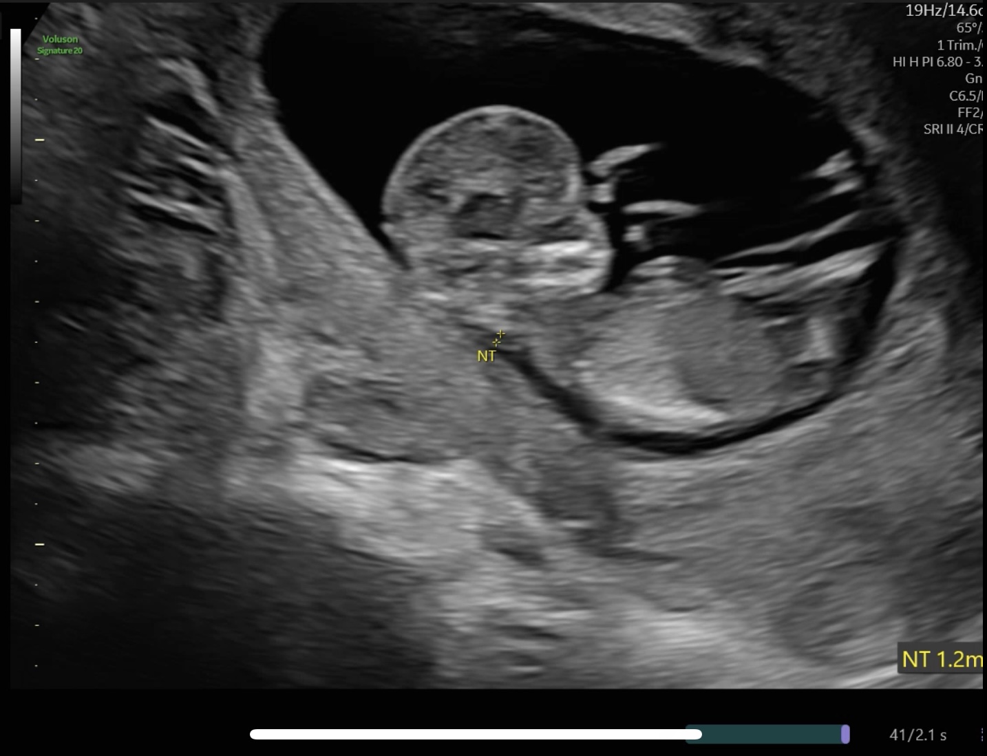 NT(목투명대) 수치는 1.2mm로 정상 범위로 측정됨.